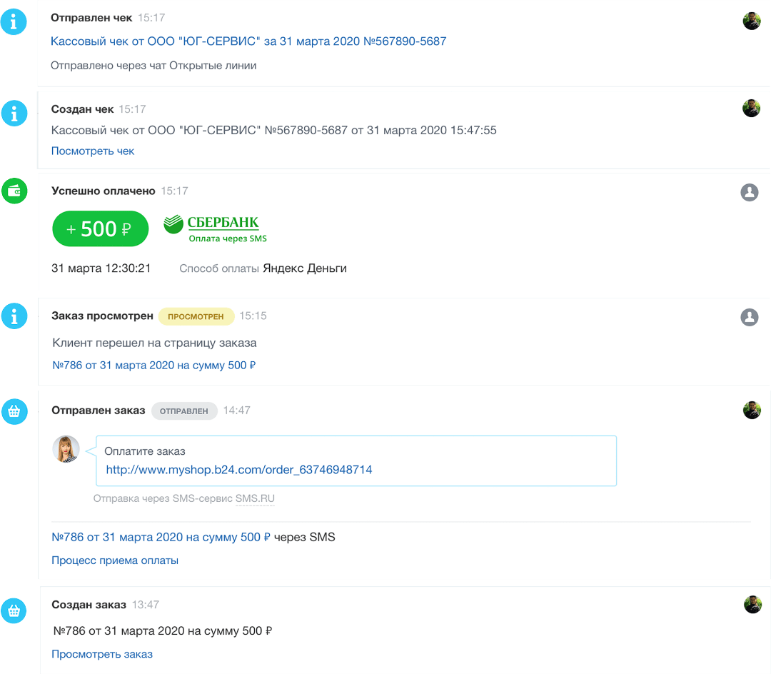 Сформируйте заказ, выставьте счет и сразу же оформите доставку через CRM-Магазин. Отправьте ссылку на оплату.