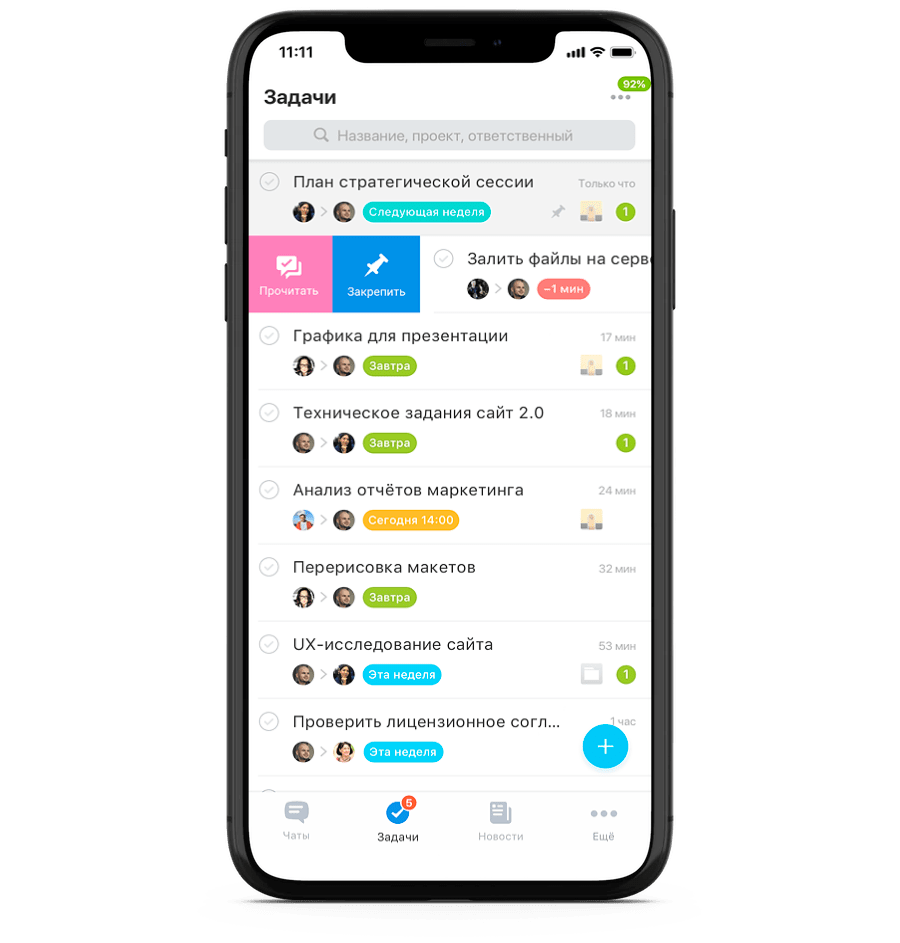 Ставьте задачи с телефона себе и коллегам, чтобы не забывать их выполнять. Это быстро и просто, как в чате!